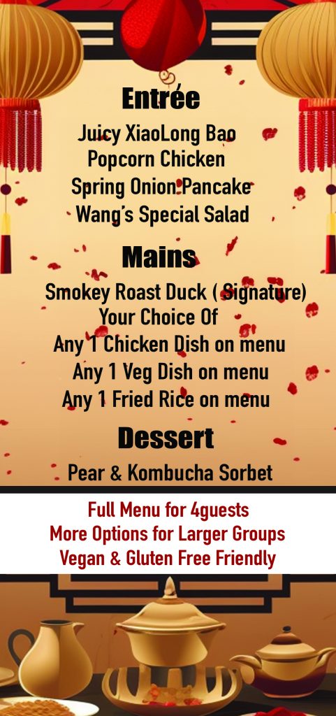 Note the banquet menus shown are designed for table of 4 people. More options are added for larger tables, depending on the size of the group.